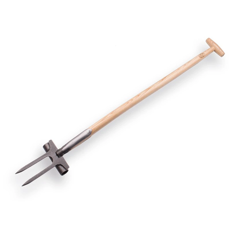 Herstel vork met korte tanden en essen steel 90 cm. Veelvuldig gebruikt door voetbalclubs bij het herstellen van hun voetbalvelden.